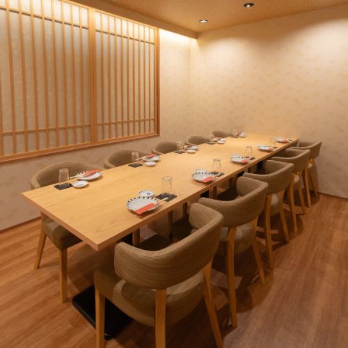宴会個室がリニューアル!落ち着いた雰囲気の12名個室。ゆとりのある空間で、12名様までご利用いただける個室。木のぬくもりを感じる落ち着いた内装で、職場の宴会やご家族の集まりにぴったり。特別なシーンにも使いやすいおすすめの個室です。